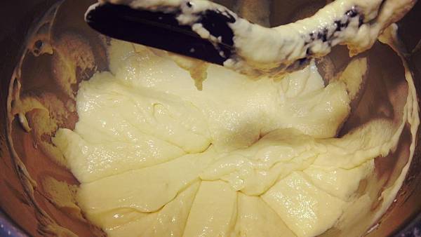 2. 分次加入雞蛋 一次一個攪拌均勻後再放下一個 再加入自製香草精